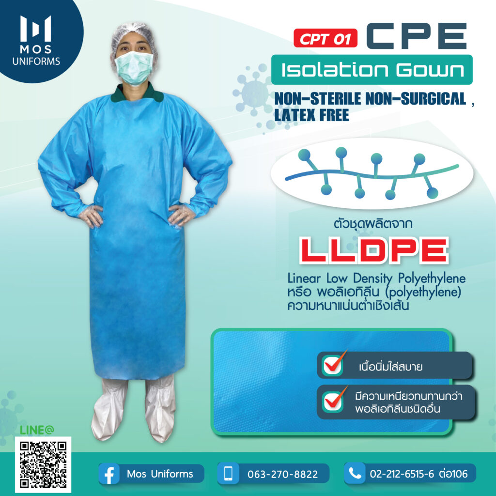 ตัวชุดผลิตจาก LLDPE (Linear Low Density Polyethylene หรือ พอลิเอทิลีน (polyethylene)) – เนื้อนิ่ม ใส่สบาย