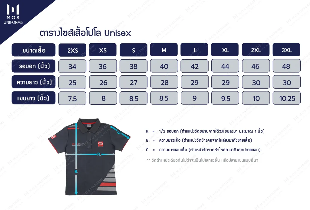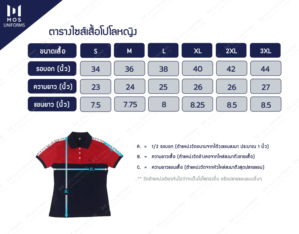 เสื้อโปโลตัดต่อข้างลำตัว ปลายแขนจั้มใส่ขอบแขนริบทอ ปกริบทอแต่งเส้นสี เพิ่มกระเป๋าที่อกเสื้อ ติดกระดุม 4 เม็ด เพิ่มความเป็นแฟชั่น