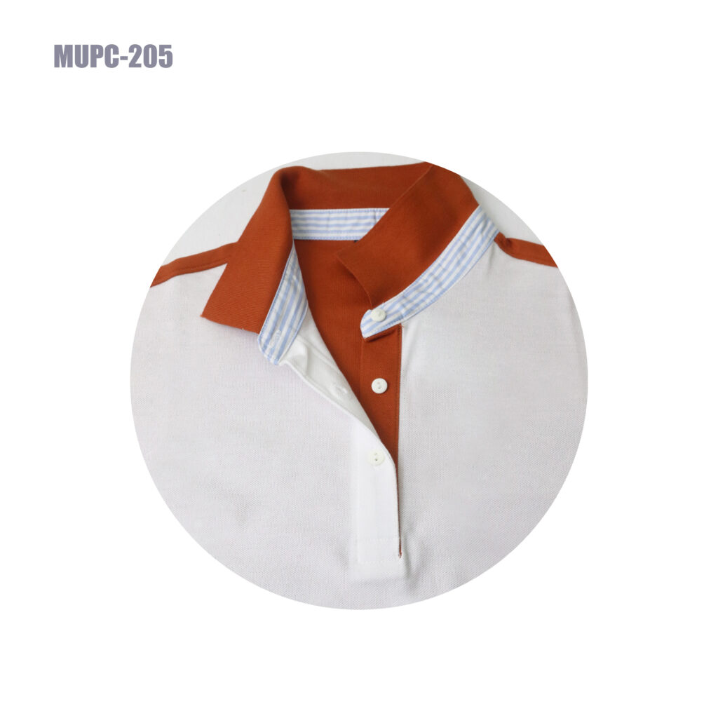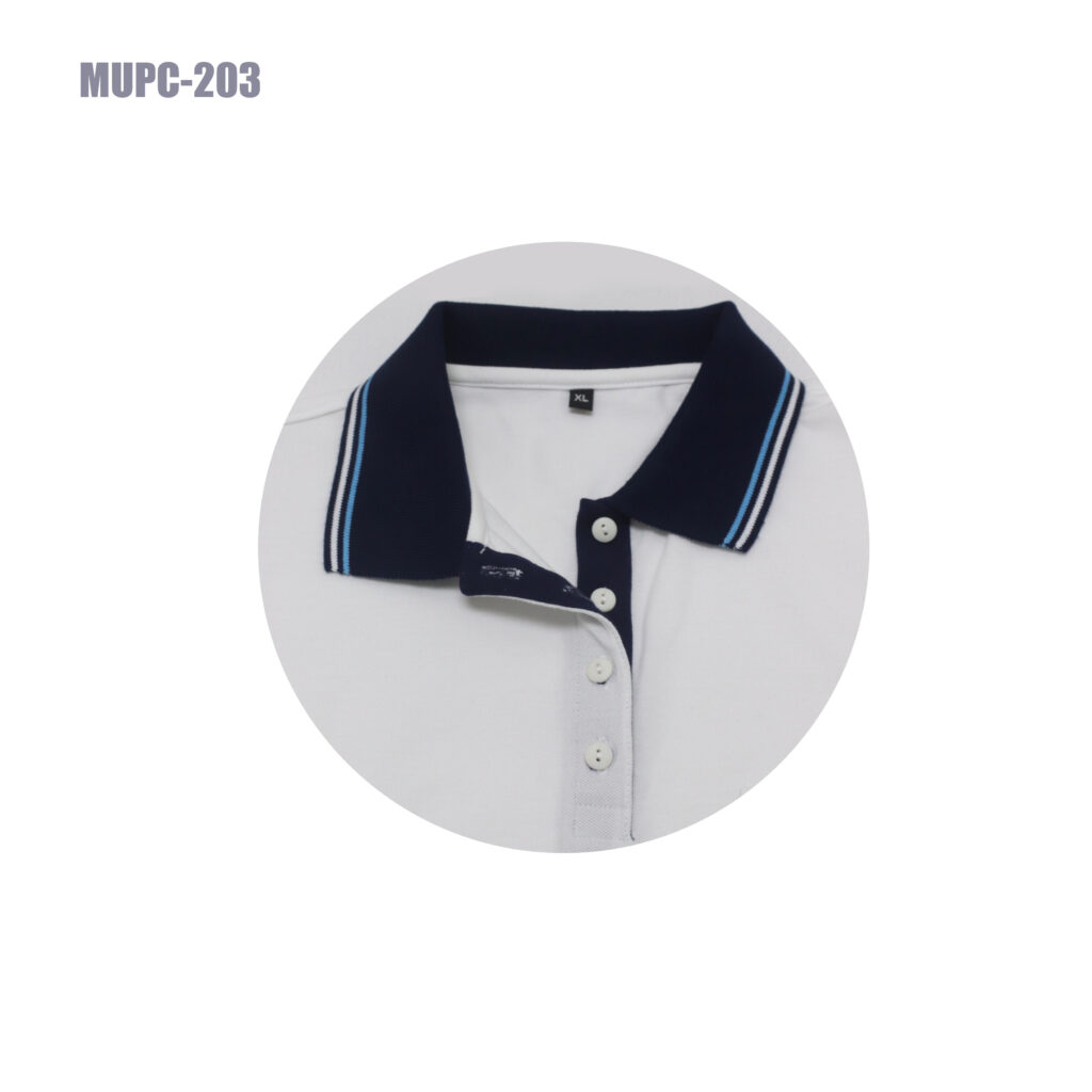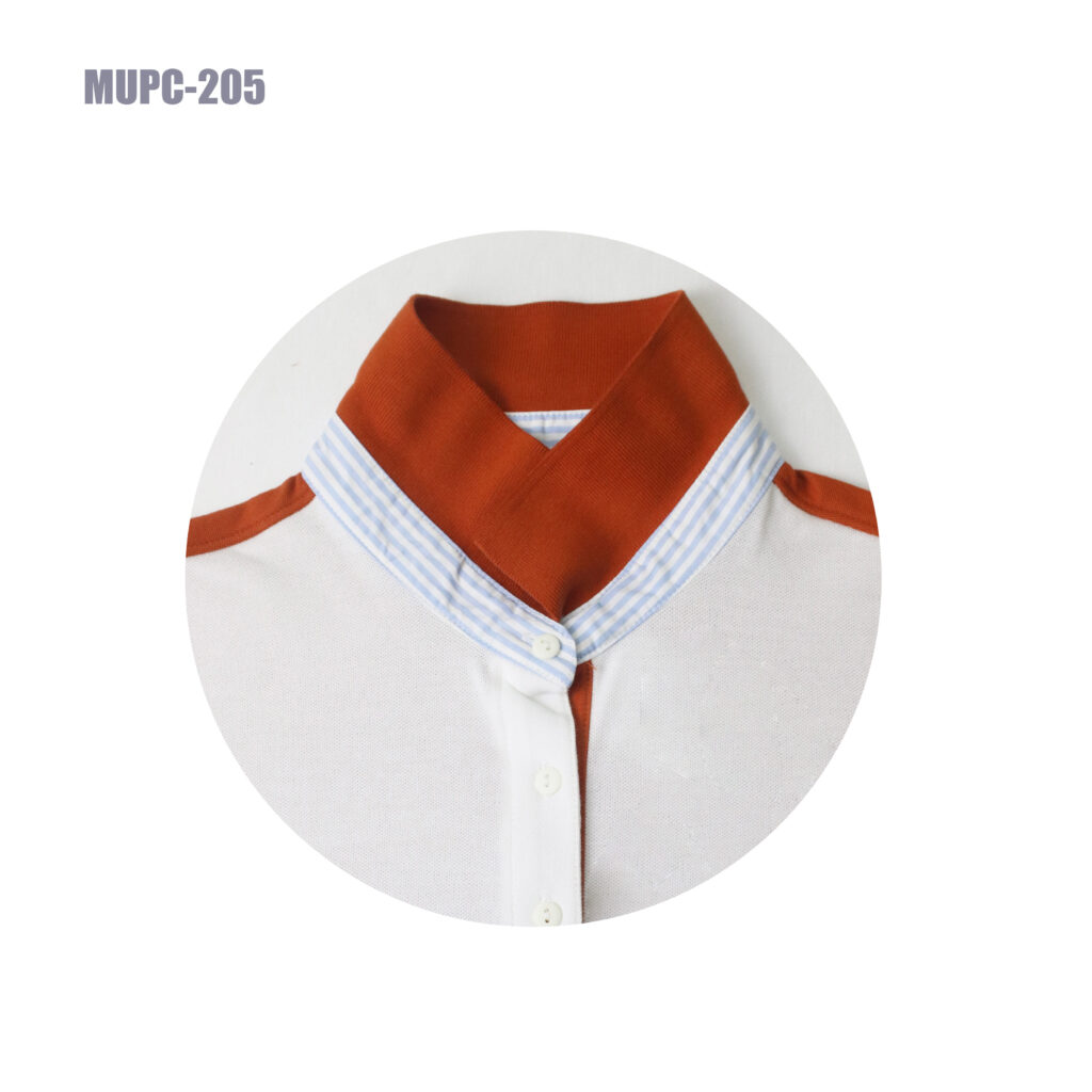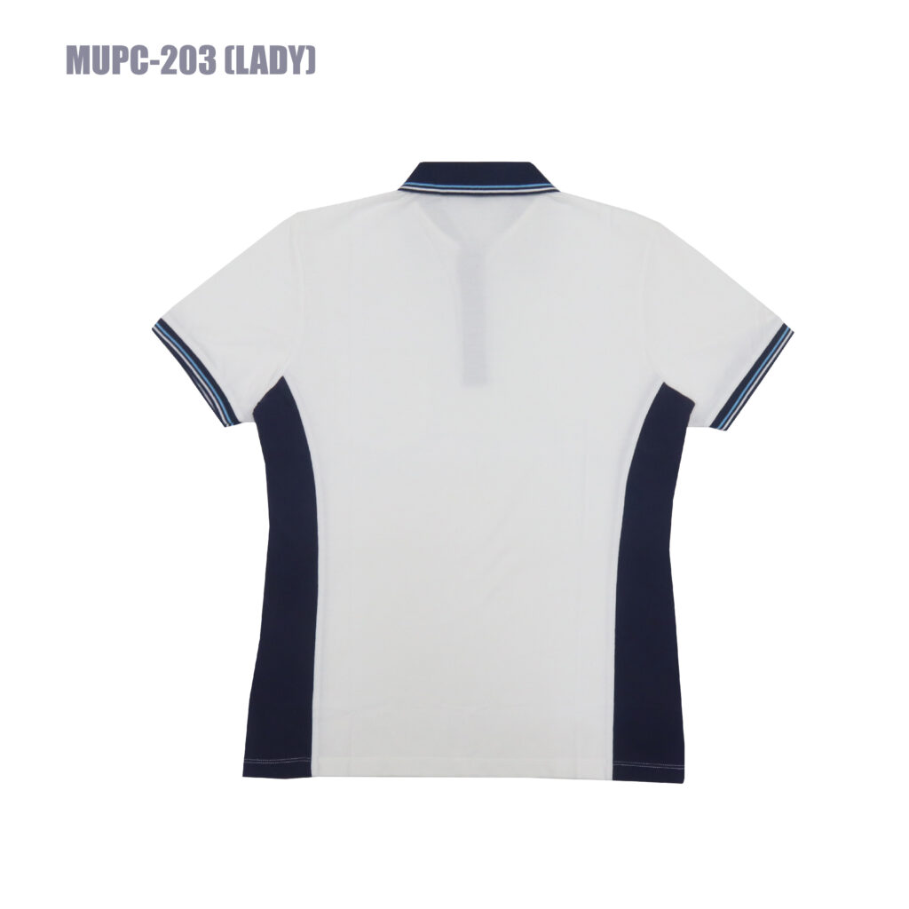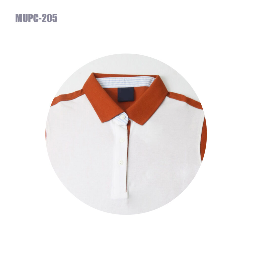 เสื้อโปโลตัดต่อข้างลำตัว ปลายแขนจั้มใส่ขอบแขนริบทอ ปกริบทอแต่งเส้นสี เพิ่มกระเป๋าที่อกเสื้อ ติดกระดุม 4 เม็ด เพิ่มความเป็นแฟชั่น